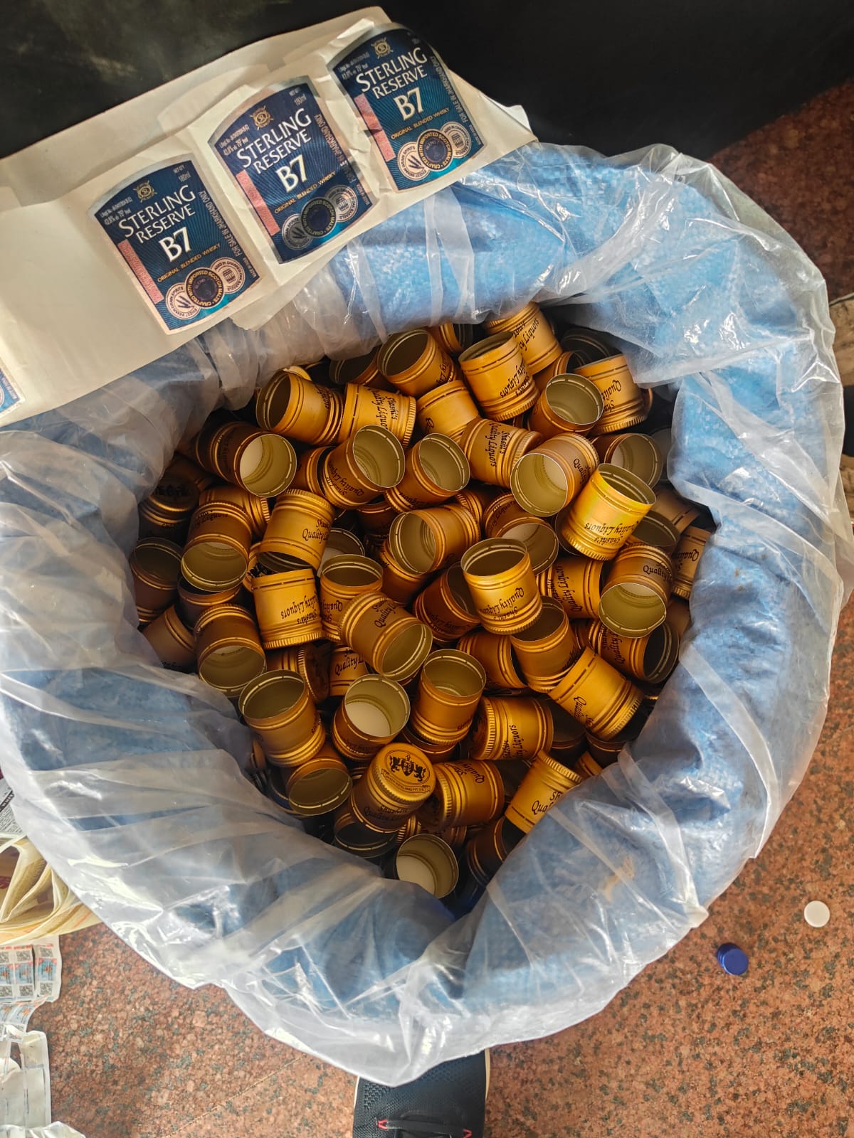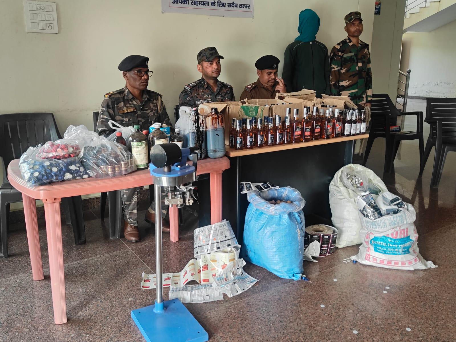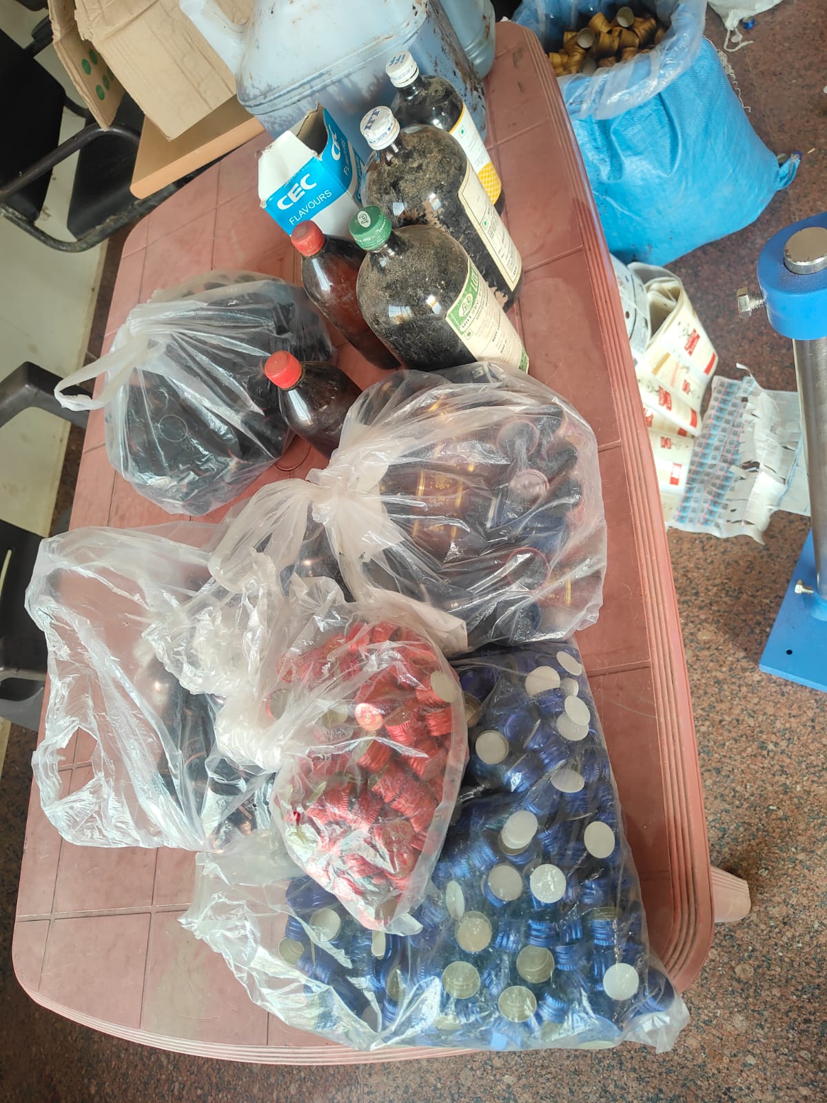 छापामारी के दौरान शराब निर्माण और पैकिंग में प्रयुक्त भारी मात्रा में सामग्री भी जब्त की गई। इसमें प्लास्टिक की 20 बोरियों में लगभग 800 छोटे-बड़े खाली कांच की शराब की बोतलें, 200 लीटर क्षमता का एक नीला प्लास्टिक ड्रम, शराब भरने के लिए छोटे 20 और बड़े लगभग 100 खाली प्लास्टिक बोतलें शामिल हैं। इसके साथ ही 40 लीटर क्षमता के दो प्लास्टिक जार और 20 लीटर क्षमता के 20 पानी के जार भी मौके से बरामद किए गए।