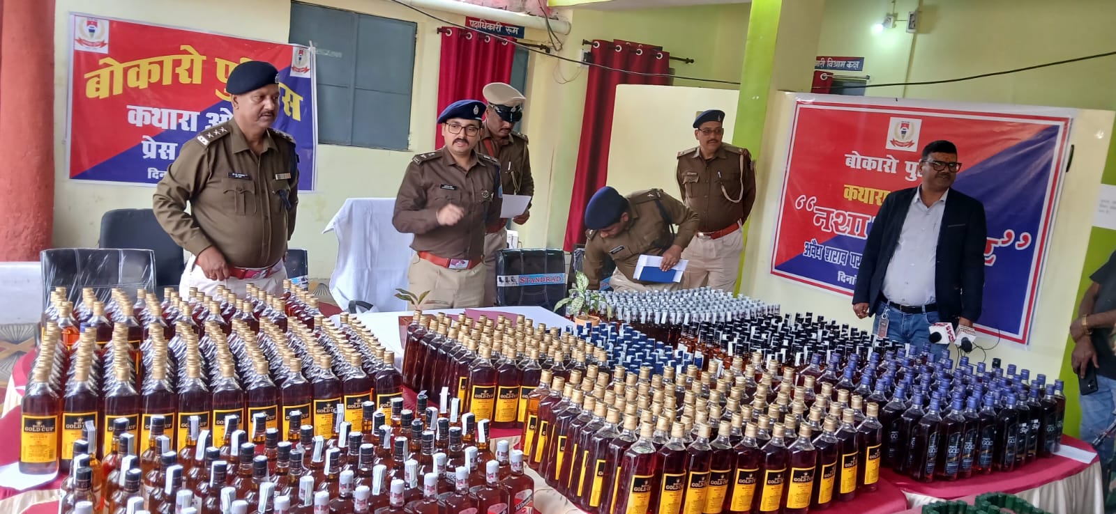 जप्त वाहन (रजिस्ट्रेशन नंबर JH01CX-7876) से विभिन्न ब्रांड की बड़ी मात्रा में नकली विदेशी शराब, शराब सील करने की मशीन, ढक्कन, स्टीकर, बारकोड और स्पिरिट बरामद की गई। बरामद शराब में किंग्स गोल्ड (72 बोतल), रॉयल गोल्ड कप व्हिस्की (300), आइकॉनिक 180 एमएल (136), आइकॉनिक 375 एमएल (48), मैकडॉवेल्स 180 एमएल (192), मैकडॉवेल्स 375 एमएल (24), बी-7 (48) सहित करीब 20 लीटर तैयार शराब और 35 लीटर स्पिरिट शामिल है। इसके अलावा विभिन्न कंपनियों के सैकड़ों ढक्कन, स्टीकर और 2250 बारकोड भी जब्त किए गए।